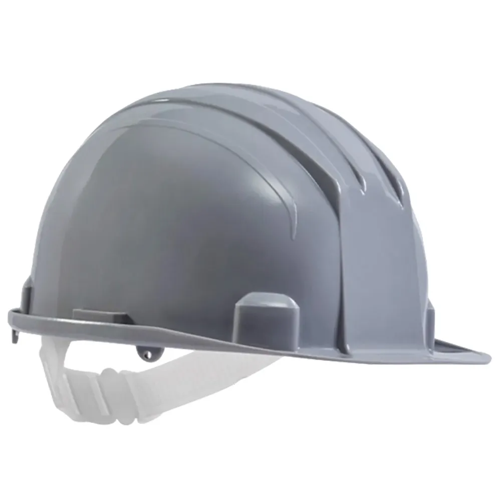 Casco industrial liviano, diseño compacto. Permite la adaptación de barbuquejo de tres puntos.