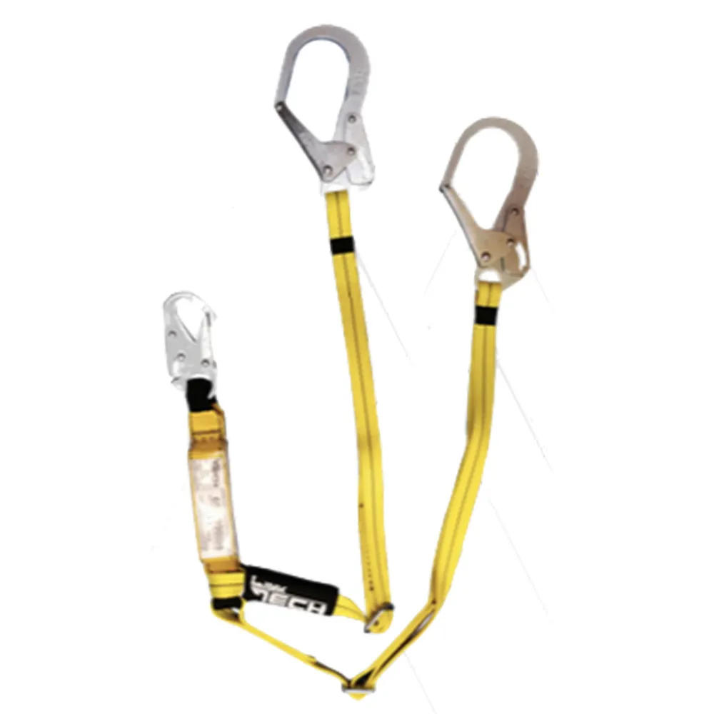 Eslinga para detención de caidas en reata con sistema de absorción de energía para disipar la fuerza de impacto sobre el usuario.